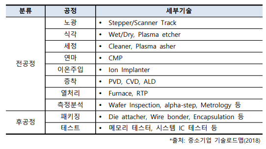 전공정 : 반도체의 품질을 결정하는 단계로 높은 기술 수준 요구