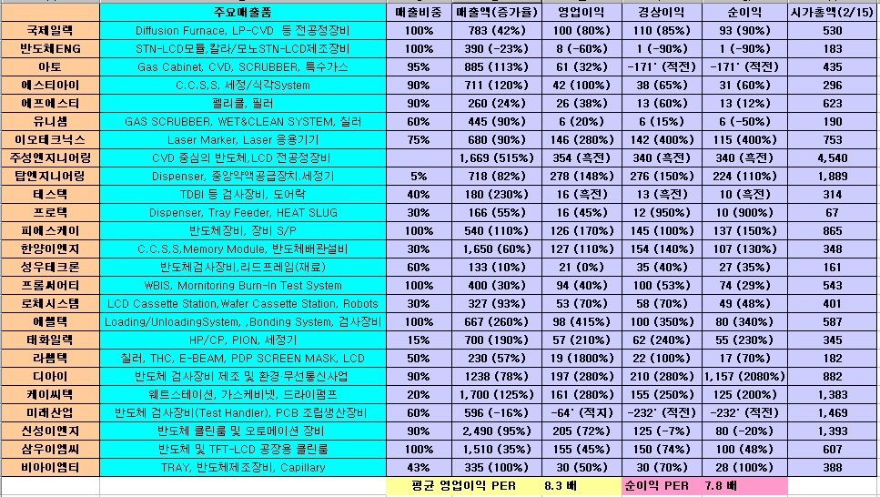 <국내 반도체 장비 업체>