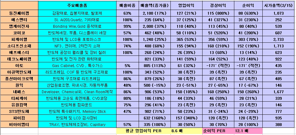 <국내 반도체 재료 업체>